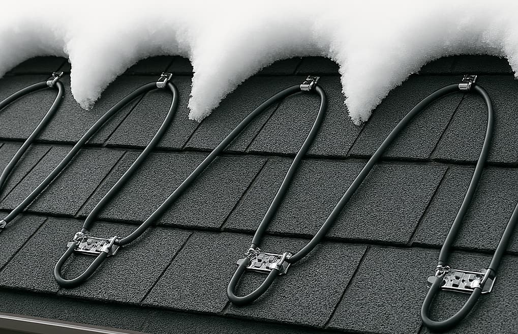 Prevent ice dams with roof heat tape, also known as heat cables. These systems are designed to keep water flowing off your roof by gently warming key areas, such as roof edges, gutters, and downspouts. By preventing ice buildup, heat tape reduces the risk of roof leaks, structural damage, and safety hazards caused by heavy snow and freezing conditions. Ideal for homes and businesses in cold climates, heat cables provide an effective solution for winter roof protection.